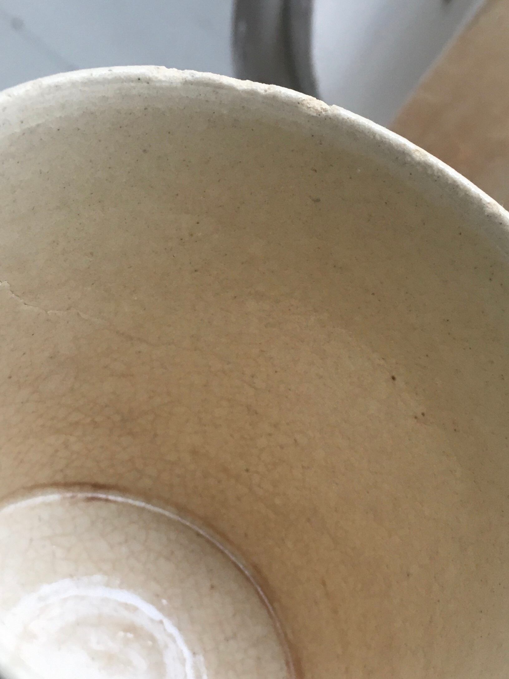 ・釉薬の表面にひびが入っているように見えますが貫入とよばれるものです。長期間の使用により着色しますが陶器の特徴の一つです。経年変化をお楽しみください。また4枚目の画像のようにピンホールと呼ばれる細かな穴が開いて見えるものがありますがこちらも特性の一つですので返品はご容赦ください。